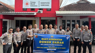 SUMEDANG, JURNAL PERS86 || Dalam rangka memperingati Hari Ulang Tahun (HUT) Lalu Lintas Bhayangkara ke-70, Satuan Lalu Lintas (Satlantas) Polres Sumedang menggelar aksi kemanusiaan berupa donor darah. Kegiatan ini dilaksanakan di kantor Palang Merah Indonesia (PMI) Kabupaten Sumedang pada hari Jumat, 12 September 2025.